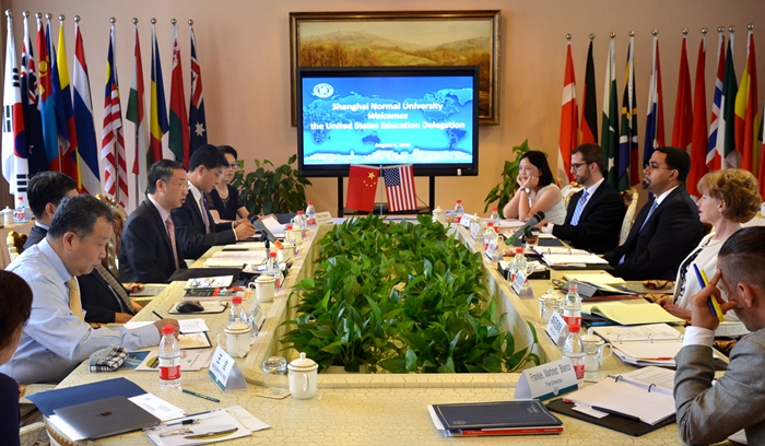 8月8日下午,美国教育部部长约翰·金(John B. King, Jr.)及其高级顾问毛琳·麦克拉夫琳(Maureen A. McLaughlin)等组成的教育代表团访问上海师范大学,了解我校开展的基础教育教师培养情况,以期推动美国中小学教学改革。