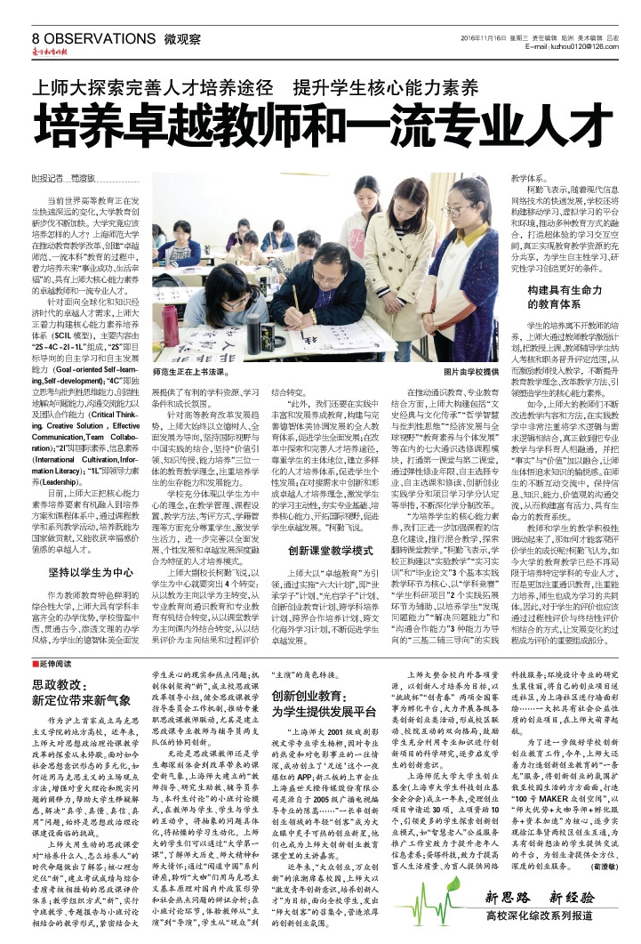 东方教育时报:上师大探索完善人才培养途径 提升学生核心能力素养——培养卓越教师和一流专业人才