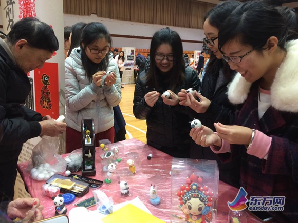 “我们教小朋友的时候,他们都以为这是橡皮泥,不知道是面塑,中华优秀的传统文化一定要多推广多宣传,才能发扬光大。”海派面塑的传人不无感慨地说,“一千多年前,面塑就是用面粉制作的。”面塑材料的制作工序复杂,需要时间和耐心,为了吸引更多的孩子学习,她总是先教怎么做简单的面塑,遇到有兴趣的人再继续教如何制作材料。在现场,上师大的师生们兴趣盎然地跟着她学习如何制作熊猫面塑。师生与非遗传承人面对面交流、互动,亲身感受到中华优秀传统文化的博大精深,感悟工匠精神的独特魅力。