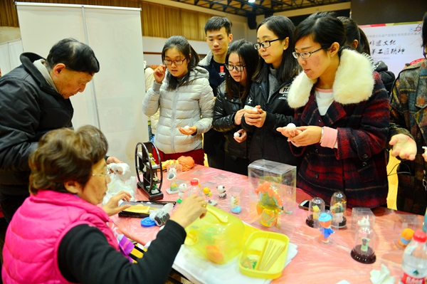 作为上海市“文教结合”的重要项目之一,非物质文化遗产进高校活动是近年上海教育部门和文化部门进一步弘扬中华优秀传统文化,推动非物质文化遗产保护、宣传和推广的重要举措。这一品牌活动以大学生喜闻乐见的形式,让他们亲身体验非物质文化的独特魅力,切身感受中华优秀传统文化的博大精深。在与学生的互动中,引导当代学生体验、了解、热爱中华优秀传统文化,让民族文脉得以更好地传播和继承,自觉践行社会主义核心价值观。