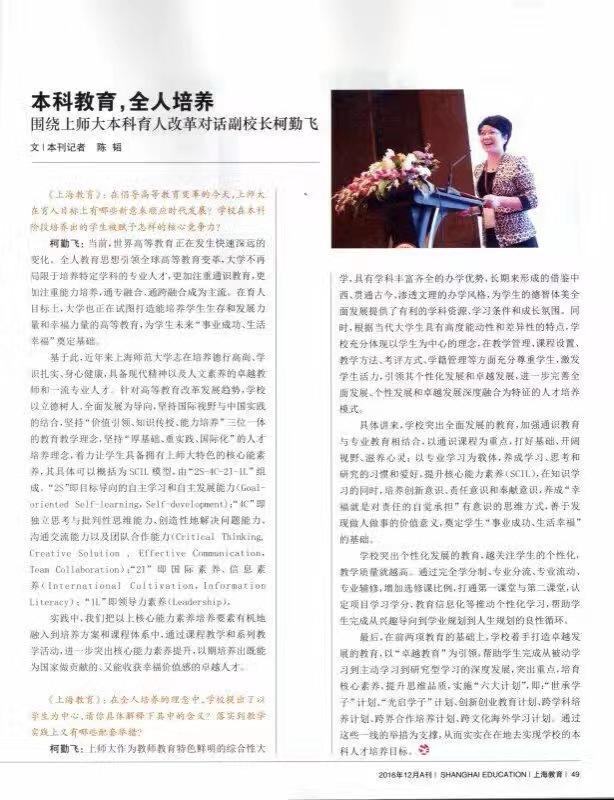 上海教育:本科教育,全人类——围绕上师大本科育人改革对话副校长柯勤飞