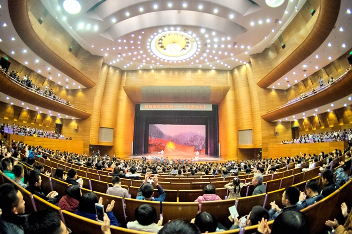 我校1977级历史系校友、北京大学历史系博导朱孝远教授说:国家一直号召我们“自信”,一个是制度自信,一个是理论自信,一个是道路自信,还有一个是文化自信,具体落实就是要做到文化艺术的引领性,以文化育人。母校能够演出这么正能量的歌剧,艺术和内容完美统一,让我们重新回到那个拥有信仰、不忘初心的年代。这样一部结合艺术品位、政治思想、新时代大学生风貌的歌剧,让我很感动,谢谢你们的演出。