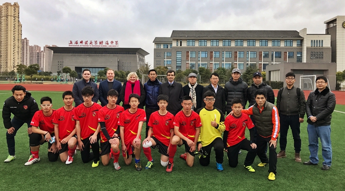 代表团一行随后和体育学院的专业负责人座谈,在课程设置、学分对接、语言要求和合作科研等方面进行深入交流,该校体育专业人士为奉贤校区体育学院的学生开设联合讲座,介绍英国足球运动训练的理念和成果,引起了学生广泛的兴趣和关注。在沪期间,代表团还观摩了上师大附中的体育教学与足球训练、参观了上海申鑫足球俱乐部基地,深入了解上海足球运动的基础和发展前景。