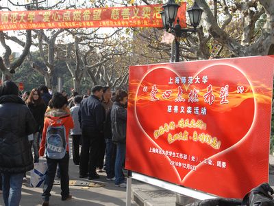 与此同时,“爱心点燃希望”慈善义卖活动在徐汇校区西部大道举行,各学院、直属单位和机关部处的师生全情参与、热情奉献。校领导王莲华、茅鼎文、李和兴、袁雯、高建华等也纷纷到场助阵,献出自己的一份爱心。此次慈善义卖的物品均为全校师生的无偿捐赠,包括生活用品、学习用品、纪念品等,种类俱全。本次义卖活动共募集了3万7千余元爱心公益金,用于本年度的帮困助学送温暖活动。