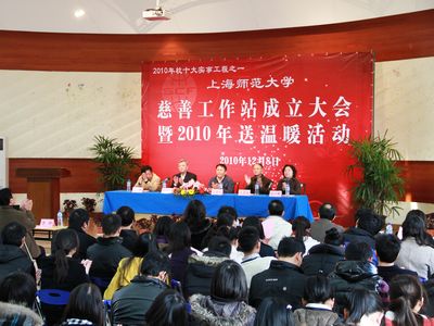 为了拓展高校帮困助学渠道,营造和谐的帮困育人氛围,经上海市慈善基金会的批准,12月8日,我校举行了上海师范大学慈善工作站成立暨2010年送温暖活动。校党委副书记、副校长王莲华、上海市慈善基金会副理事长崔善江,上海市慈善基金会副秘书长叶恩国、庄严,上海慈善物资管理中心的部分领导,市慈善基金会奉贤、徐汇分会的代表以及华东师大、华东理工、应用技术学院等兄弟高校代表和学校相关职能部处领导、学院师生代表200多人参加了成立仪式。