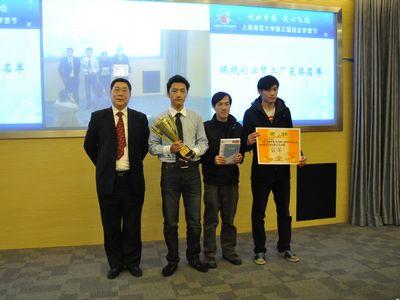 进入创业梦工厂总决赛的易BY益、爱心伞广告公司、俏夕阳与高校综合服务站四个团队首先分别进行了10分钟的项目概述,评委们就各个项目的意义及实际操作性进行考量后投票,最终决出爱心伞广告公司及高校综合服务站进入最终轮的PK赛。PK赛中,两个团队通过财务分析、双方质疑、观众与评委提问等环节,针对各自及对方项目作深刻剖析。最终,高校综合服务站荣获本次大赛冠军、爱心伞广告公司荣获亚军、俏夕阳与易BY益并列季军。赛后上海市浙江商会副秘书长安景林老师指出,爱心伞项目反映了当代大学生的社会责任感,十分可贵,评委一致给以充分肯定,并期待和鼓励有更多的大学生投入创业的同时怀有公益意识。