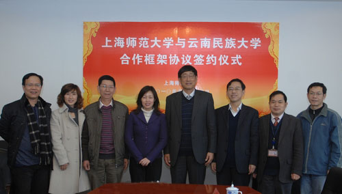 云南民族大学校长张英杰、校长助理尤仁林一行日前访问了我校,与李进校长、李和兴副校长等就两校合作进行了亲切的会谈。两校领导介绍了各自学校的优势学科和特色学科,并就学科建设、学生培养、师资建设、重大项目申报等方面的合作进行了富有成效的协商。会谈后,李进校长和张英杰校长分别代表两校签署了《上海师范大学与云南民族大学合作框架协议书》。