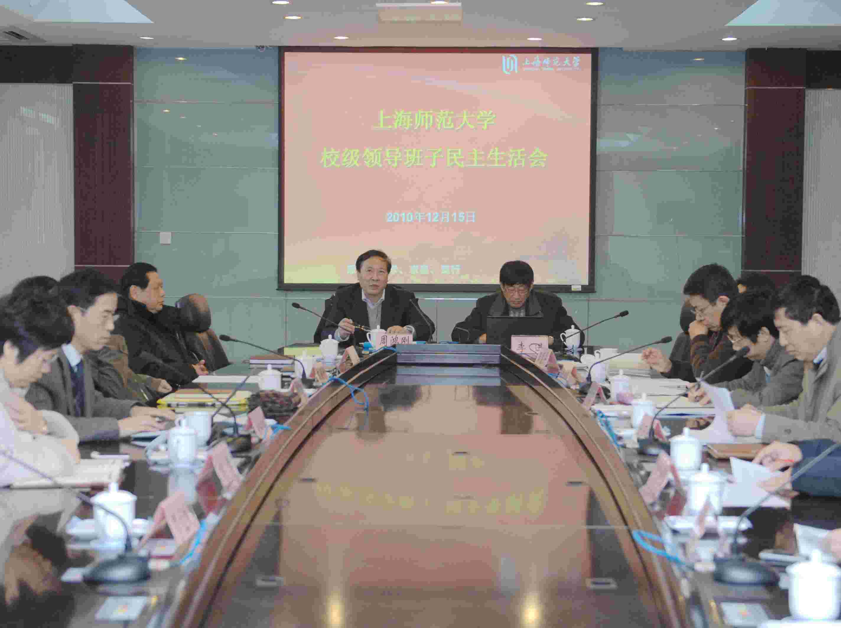 12月15日, 2010年度校级领导班子民主生活会在外宾楼101会议室召开。校领导周鸿刚、李进、黄刚、王莲华、茅鼎文、陆建非、张国凤、杨卫武、李和兴、丛玉豪、袁雯、高建华,市教卫党委组织干部处处长蔡桂其出席会议。民主生活会由校党委书记周鸿刚主持。