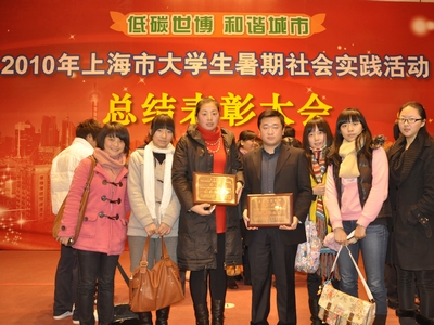 在市委宣传部、市文明办、市教卫党委、市教委、团市委、市学联等单位联合主办的2010年上海市大学生社会实践活动评选活动中,我校在“优秀组织奖”、“最佳项目奖”、“优秀项目奖”、“优秀指导教师”和“优秀个人”的所有奖项中均榜上有名。我校2010年暑期社会实践以“90后,志在世博;90后,一起拼搏”为活动口号,组织开展五大类社会实践活动:各类世博会志愿者服务、爱心学校、“知行杯”大学生社会实践公益大赛、世博宣讲实践活动及专题性社会实践服务团。校团委在第一时间以博客、新闻等形式在“上海市大学生社会实践网”和《夏之韵》社会实践特刊上进行报道。通过书面材料及网络评选,我校从全市50余所高校中脱颖而出,荣获“优秀组织奖”;“‘音乐串起希望’赴贫困地区三下乡爱心义演”荣获“最佳项目奖”;“‘十六年爱心学校’社区服务活动”等12个社会实践项目获得“优秀项目奖”;商学院胡仰乔、美术学院周泽龙获得“优秀指导教师”称号;体育学院07级学生陈瑜等4位同学获得“优秀个人”称号。