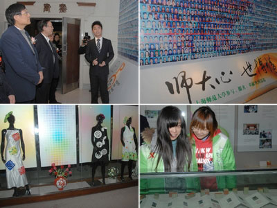 仪式结束后,与会领导、小白菜和我校师生员工代表参观了《师大心世博情》世博巡礼展览,回顾了我校师生积极参与、服务、奉献世博会的过程。