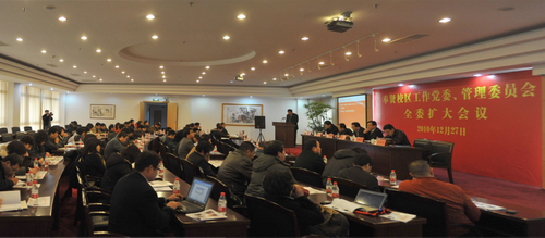 12月27日下午,奉贤校区工作党委、管委会全委扩大会议在图文中心九楼会议厅召开。校领导周鸿刚、黄刚、茅鼎文、陆建非、丛玉豪、高建华出席会议。参加会议的还有两委会委员、两委全体办公会议成员以及相关职能部门负责人。奉贤校区工作党委副书记、管委会副主任李明主持会议。