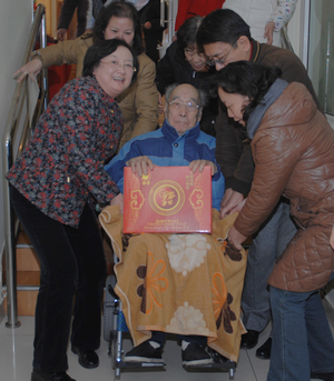 2010年的最后一天恰逢寒潮来袭,但学思苑餐厅一隅却是暖意融融。八位90岁以上退休老人应校领导的邀请,来校参加“2010年90周岁以上退休老人辞旧迎新贺岁聚餐会”。校党委书记周鸿刚、校长李进、副校长陆建非及人事处负责人等与他们欢聚一堂,畅叙深厚情谊,互致美好祝愿,共迎新年到来。