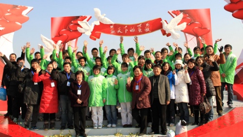 来自我校人文、教育、建工、金融、商、旅游等6个学院的416位世博志愿者参与了此次启动仪式的表演。师大的志愿者们克服困难,用最快的速度学会了整套表演的动作,以最好的状态出色地完成了演出。阳光下,白菜们伴随着“蓝天下的至爱”的旋律,向着太阳扮起了向日葵,充满阳光和朝气,为整个慈善活动增添了绚烂的一笔!