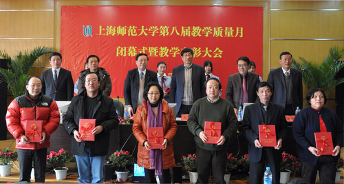 1月12日下午,第八届教学质量月闭幕式暨教学表彰大会在文苑楼二楼报告厅举行。校领导周鸿刚、李进、黄刚、陆建非、丛玉豪、高建华出席会议。周鸿刚宣读了《上海师范大学关于2010年度校级教学成果奖励的决定》,黄刚宣读了《2010年度校级教学成果奖获奖名单》,高建华宣读了《上海师范大学关于第八届“教学质量月”活动表彰奖励的决定》,第八届教学质量月活动优秀组织奖获奖院校代表王全喜教授和2010年度校级教学成果奖获奖代表裔昭印教授分别作为获奖代表发言。陆建非副校长主持会议。
