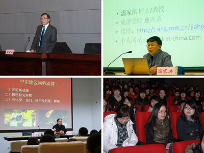 3月11日,日本东北部海域发生里氏9级强震、并引发大规模海啸,造成重大损失及人员伤亡,引起同学们广泛关注。为了更好地让大学生了解地震知识和此次地震带来的影响,学工部于3月16日在两校区推出两场“形势与政策”课专题讲座,分别由加州大学伯克莱分校地震学博士、我校特聘教授秦建业,我校旅游学院地理系主任、博士生导师、温家洪教授主讲。