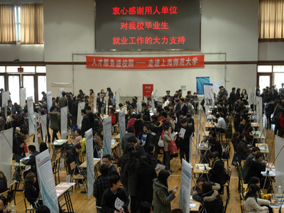 3月23日下午,由我校主办,上海人才服务行业协会和前程无忧协办的“人才服务进校园”2011届毕业生春季校园招聘会在西部球类馆举行。这是我校连续第三年与上海人才服务协会合作举办招聘会。