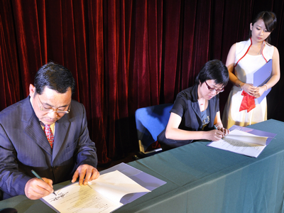 上海市群众艺术馆馆长萧烨缨、副馆长钱伟萍与我校艺术中心主任靳超英分别签署《上海师范大学大学生艺术实践基地协议》、《上海市社区文艺指导员派送协议》。根据协议内容,我校艺术中心与上海市群众艺术馆、上海东方社区文艺指导中心将在社区文艺指导员派送、艺术类人才作品展示以及艺术活动策划实施等多方面进行全方位合作,共同组建“上海师范大学大学生艺术实践基地”, 为我校艺术类人才搭建了一个服务社区、奉献社会、自我展示的平台,也标志着我校大学生艺术实践工作取得创新性的突破。