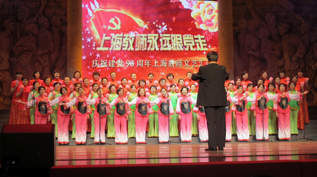 6月3日,“上海教师永远跟党走”——庆祝建党90周年上海教师文艺汇演在上海戏剧学院实验剧场举行,我校“女教师合唱团”在分片赛中脱颖而出,代表上海师大参加演出。
