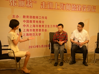 本次论坛主要以访谈形式开展,在“为了心中的教育信仰”、“为了学生的全面发展”、“为了祖国明天的幸福笑脸”三个主题中,上海外国语大学附属双语学校语文老师樊阳、上海市卢湾高级中学语文老师项恩炜、上海市辛灵中学政教主任黄权、上海第二工业大学体育老师蔡忠明、上海市现代职业技术学校计算机教师贾青、上海市浦东新区园西小学数学老师章爱民、上海市金山区朱泾第二小学数学老师金粉华、上海市青浦第一中学数学老师王晓洁作为“寻找身边张丽莉”活动上海推荐人选与我校谢晋影视艺术学院青年教师姜杉展开对话,并与台下师生进行互动。这8位教师,在平凡的岗位上表现出了不平凡的人格魅力、学识魅力、大爱情怀:有的坚持20余年每周开设免费人文讲堂,与功利主义世风拔河,守护人文灯火;有的多次见义勇为,抢救落水儿童;有的身患重症,每周需要透析三次,却仍然坚守三尺讲台;有的因材施教,注重与学生的心灵沟通;有的是教育界的“特种兵”,在工读学校谱写爱与责任的心曲;有的善于创新,勇于探索,培养的学生频频获奖,是名副其实的“金牌”专业户。嘉宾们畅谈了自己的教育理想,为人师表应该具备的专业精神、人文素养和责任意识,与在场师生分享了自己的教育经历和人生感悟。他们真诚的话语令现场观众动容,师范生小周表示,作为即将站上讲台的90后,希望能像优秀的前辈一样,爱学生,懂学生,做一个用言行去影响学生人生的教师。师范生小王谈到,如果我们想成为张丽莉老师那般优秀的教师,比一瞬间的决定更重要的是对孩子点滴的爱的积累。