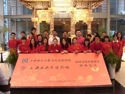 5月31日下午,我校对外汉语学院和土山湾博物馆的精神文明共建基地揭牌仪式在徐汇区蒲汇塘路土山湾博物馆举行。徐汇区文化局副局长宋浩杰、校团委书记戴冰、对外汉语学院党总支主持工作副书记武长河、土山湾博物馆馆长程菊英,以及学校、学院团学工作负责人,25名中外志愿者代表共同出席了揭牌仪式。