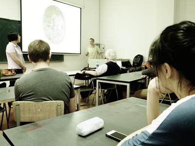 同时,道森学院David, Mark及Frank教授在6月5日进行了题为“2013道森学院毕业设计展概述”及“人体世界”的讲座,本次讲座为“2013学思湖海外名师讲坛”系列讲座之一。讲座中,道森学院的教师就该校学生毕业作品中的优秀作品进行了逐一分析,并介绍了该校学生在魁北克商业区橱窗设计中的优秀案例。Frank教授在其“人体世界”的讲座中,深入浅出地介绍了插画艺术的形态及他在插画创作中的体验。通过视频,在座学生观看了Frank教授烧制各种炭笔及制作其它绘画用具的全部过程,领略了炭笔插画的魅力。尤为一提的是,在讲座中,Frank教授对同期在美术学院展出的19幅同名插画——“人体世界”插画展中的代表作进行了分析,学生们充分学习了插画艺术中的造型、明暗冲突、母题延展等知识。