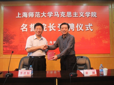 聘任仪式由校党委副书记黄刚主持。受校党委书记陆建非教授和校长张民选教授的委托,黄刚向李君如研究员颁发了马克思主义学院名誉院长聘书,对他回母校加盟马克思主义学院表示感谢,并希望在他的带领下,全体马克思主义学院师生共同努力,马克思主义理论学科发展更上层楼。