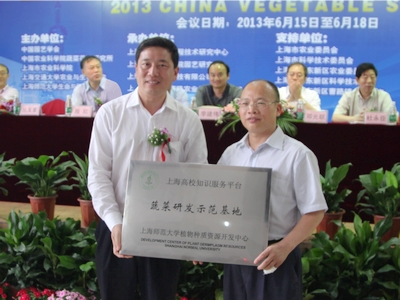 6月16日,在上海浦东新区中国青年蔬菜产业创业就业培训园开幕的“第四届中国蔬菜新优品种博览会”上,我校“植物种质资源开发中心”与上海种都种业科技有限公司迈出产学研合作的实质性一步——在种都公司设立“蔬菜研发示范基地”,并与该公司签订蔬菜合作协议,进一步推进中心与企业的产学研合作,加强平台的科研应用能力,服务社会。副校长丛玉豪出席大会开幕式并向上海种都种业科技有限公司授牌。中心主任王全喜与种都签订合作协议。中心一行人员参与大会活动。