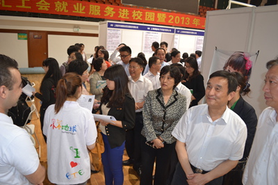 在毕业生临近毕业之际,学校通过提供就业服务、推荐就业岗位帮助未就业的毕业生顺利就业。6月13日下午,学校联合徐汇区总工会、康健街道在西部球类馆举办“徐汇区工会就业服务进校园—2013年上海师范大学就业专场招聘会”。市总工会副主席侯继军、徐汇区区委副书记李子俊、徐汇区政府副区长谢坚钢、王珏,校党委副书记、副校长王莲华等领导同志亲临招聘会现场指导就业工作。相关职能部门、学院领导和辅导员等出席招聘会。