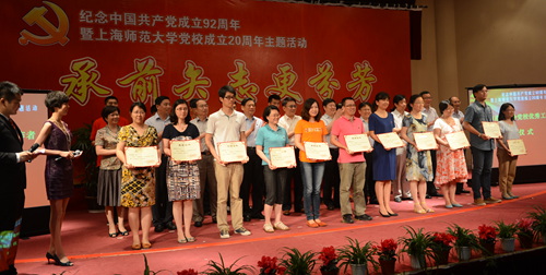 在党校成立二十周年之际,校党委决定对各分党校优秀工作者进行表彰。校长张民选宣读了《上海师范大学分党校优秀工作者获奖名单》,全体校领导为获奖者颁发了荣誉证书。