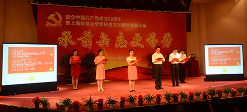 七月一日,上海师范大学庆祝建党九十二周年暨校党校成立二十周年主题大会在教苑楼多功能厅举行。全体校领导、校长助理、老领导、老干部代表、校党务正职、学院副书记、各学院组织员、教工党支部书记代表、党校兼职教师、党校学员代表等三百余人共聚一堂,一起庆祝这一光荣的时刻。上海财经大学、华东政法大学、上海大学、上海中医药大学等兄弟院校的党校领导也应邀参加了本次活动。