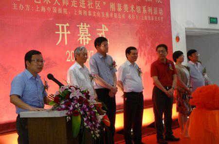 7月19日,校党委书记陆建非参加了在刚泰美术馆举行的上海市首届市民文化节中国画院名家作品展暨"艺术大师走进社区"刚泰美术馆系列活动开幕式并剪彩。开幕式结束后,陆建非在美术学院院长俞晓夫的陪同下饶有兴趣地参观了画展。美术学院二十多位专业教师也参加了此次活动。