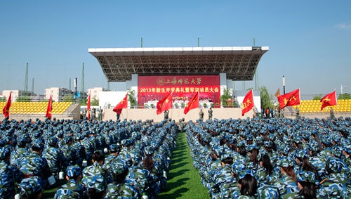 金秋九月,我校又迎来了新一批满怀梦想的莘莘学子。9月2日上午,2013级新生开学典礼暨军训动员大会在奉贤校区南区操场隆重举行。校领导陆建非、张民选、王莲华、杨卫武、秦莉萍、葛卫华、丛玉豪、高建华、柯勤飞、康年、刘晓敏,校长助理茆训诚、张峥嵘,承担这次军训任务的海防二旅副政委胡向阳上校、学校有关职能部门负责人以及5100余名本科新生共同参与典礼。副校长丛玉豪主持开学典礼。