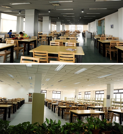 二、新建和改造图书馆学生自修室。将三楼的视听阅览室改建成两个自修室,设置教师推荐书、思政书籍专区,更新六楼自修室阅览桌椅,一楼和二楼大厅增加休闲座椅。改造之后,室内外自修座位数达到660多个,图书馆各阅览室总座位数达到2300多个。
