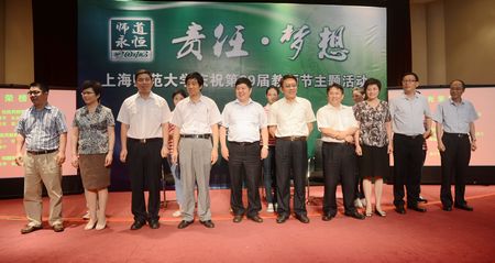 9月11日,学校开展了“师道永恒2013:责任•梦想”主题活动,庆祝第29届教师节。校领导陆建非、张民选、王莲华、杨卫武、秦丽萍、丛玉豪、高建华、柯勤飞、康年、刘晓敏,校长助理茆训诚,离退休老领导、老同志代表和师生代表参加了活动。