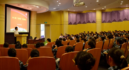 9月12日上午,2013级“世承班”开班典礼在奉贤图书馆二楼圆厅举行。大会由副校长丛玉豪主持,校长张民选,副书记葛卫华等领导出席典礼并分别致辞。参加典礼的还有教务处、学工部、教育学院、外语学院、数理学院、人文学院的领导以及各“世承班”的班导师和辅导员,2013级“世承班”的123名新生全体出席典礼。