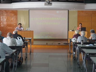 离退休支部分别就各自开展教育实践活动的方案向老干部作了布置,老同志们表示将加强学习,充分认识教育实践活动意义,永葆政治本色,树立新时期老干部的良好形象,在思想上、行动上和党中央保持高度一致,为学校改革发展稳定再作贡献。