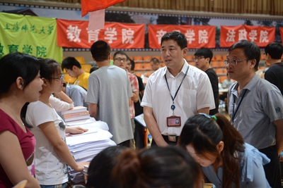 9月11日,研究生新生报到在徐汇校区西部球类馆举行。副校长丛玉豪来到报到现场指导工作,并对工作人员和研究生志愿者表示慰问。丛玉豪还与报到新生亲切交谈,鼓励他们在新的环境中树立新目标,在认真钻研学术的同时,力求全面发展,报到现场充满浓浓情意。此次报到还为新同学们提供务实贴心的服务:新生们可提前入住宿舍,整理好行李,只需携带证件至现场完成查验即可;为家庭特困生开通绿色通道,现场可直接递交申请,缓缴学费等。快捷的报到方式、合理的报到流程、热忱的服务态度受到了广大新生和家长们的好评。