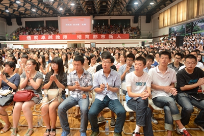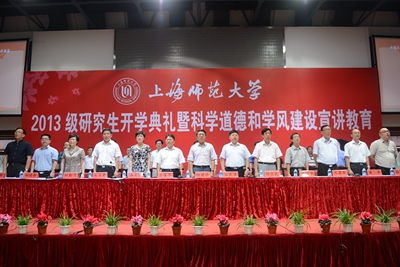 9月16日,2013级研究生开学典礼暨科学道德和学风建设宣讲教育在徐汇校区西部球类馆隆重举行。校领导陆建非、张民选、王莲华、杨卫武、秦莉萍、葛卫华、丛玉豪、高建华、柯勤飞、康年、刘晓敏及校长助理茆训诚等出席了开学典礼。出席典礼的还有各学院负责人、导师代表、研究生辅导员、老生代表和全体研究生新同学。开学典礼由副校长丛玉豪主持。