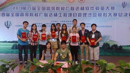 广联达软件算量大赛是通过组织竞赛,进一步倡导能力为本位的理念,并在此基础上基本统一工程造价专业的专业能力培养模式;进一步推动建筑类专业课程改革,推动高等院校在工程类专业课程中进行实践模拟教学的探索以及教学实验基地的建设。我校的两支代表队取得一个二等奖、一个三等奖的优异成绩。