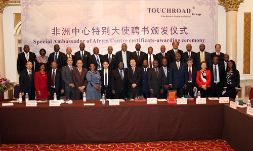 多哥、埃塞俄比亚、莫桑比克、佛得角、贝宁、博茨瓦纳、布隆迪、几内亚、加蓬、津巴布韦、科摩罗马拉维、毛里求斯、南苏丹、塞内加尔、塞舌尔、乌干达、尼日利亚、南非、埃塞俄比亚、赞比亚、毛里塔尼亚、乍得、加纳等来自20多个非洲国家的大使、大使夫人、代办、驻上海总领事和参赞等外交官以及上海师范大学、中国浦东干部学院、上海市人民政府外事办公室、浙江省人民政府外事办公室、上海浦东新区人民政府外事办公室、上海市工商联、浙江省人民政府侨务办公室、上海市工商联等单位领导共同出席了非洲中心特别大使证书颁发仪式。