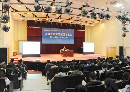 11月5日下午,学校“形势与政策”课“一月一讲”邀请上海财经大学世界经贸系副主任、博士生导师、上海自由贸易区研究中心副主任、中国国际贸易研究会秘书长陈波做《上海自贸区的成因与意义》专题报告,为学生解读上海自贸区建设的意义与发展机遇。讲座在教苑楼多功能厅举行,吸引近200名本科生,部分研究生和教师也慕名旁听。