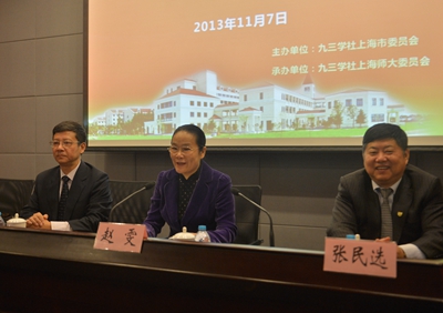 “今天,中国高等教育的发展并不在于多一所大学,更不在于多招一些大学生,我们需要的是高质量的教育、高水平的大学、有特色的办学,需要的是改革探索的勇气!”上海纽约大学校长俞立中的主旨发言拉开了九三学社上海高校论坛第五十次会议的序幕。11月7日,作为纪念九三学社上海师大基层组织成立五十五周年重要活动之一,由九三学社上海市委主办、九三学社上海师大委员会承办的上海高校论坛第五十次会议在我校举行,13所论坛成员单位的100多位九三学社社员代表济济一堂,共议“高等教育改革发展与教育国际化”。九三学社中央副主席、上海市副市长、九三学社上海市委主委赵雯,九三学社上海市委副主委程维明、周锋、黄勇平,秘书长朱红;我校校长张民选,校党委副书记、旅专党委书记杨卫武,市教卫党委统战处处长金勤明,以及九三学社上海市委参政议政部、宣传部负责人,论坛成员单位高校党委统战部负责人出席。