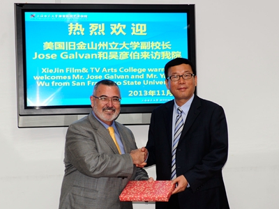 近日,美国旧金山州立大学副校长Jose Galvan博士 、吴彦伯博士来访我校谢晋影视艺术学院。副校长高建华亲切接待了来访客人,国际交流处副处长张向红、谢晋影视艺术学院院长赵炳翔等学院主要领导和分管外事工作负责人出席了会谈。