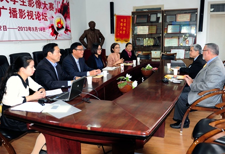 会谈中,赵院炳翔汇报了自2010年两校签订交换生合作项目以来,学院连续四年成功开展的暑期国际纪录片工作坊的具体情况以及所获成果。