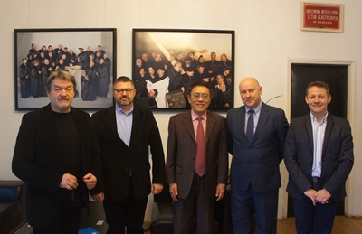 随后,陆建非应邀访问了波兰波兹南艺术大学,该校校长Mrcin Berdyszak、分管国际交流事务的副校长Andrzej Syska以及相关学院负责人给予热情的接待,双方进行了亲切的会谈。会谈后,双方签署了学生交换项目协议书,在今后合作中,将在原有基础上,增多学生交流项目,尤其是两校学生工作营和联合展等项目。会谈后,陆建非一行还应邀参观了大学的各个工作室,了解教学及科研情况。