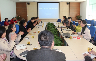 今年10月,中国工会十六大在北京人民大会堂胜利召开,我校法政学院副教授高岚作为上海高教系统的两位代表之一出席了大会。为学习和贯彻中国工会十六大精神,11月19日,校工会召开工会工作会议,特邀请高岚代表传达大会精神。副校长、工会主席柯勤飞出席并主持会议,教代会代表团团长、校工会委员、经审委员、部门工会主席与会。