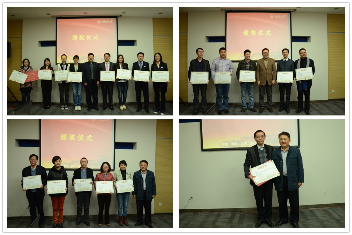 王莲华代表学校宣读了《关于表彰参加第十三届“挑战杯”全国大学生课外科技作品竞赛获奖师生的决定》。生命与环境科学学院滕晓娟等28位学生获“上海师范大学大学生科技创新先进个人”荣誉称号;美术学院刘旭光教授等8位导师获“上海师范大学大学生科技创新优秀指导教师”荣誉称号;生命与环境学院余锡宾教授获“上海师范大学大学生科技创新最佳指导教师”荣誉称号;人文与传播学院、音乐学院、美术学院、生命与环境科学学院、数理学院等5个学院获“上海师范大学大学生科技创新优秀组织单位”荣誉称号。