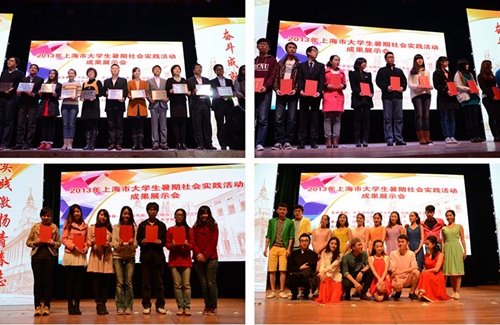 11月22日上午,2013年上海市大学生暑期社会实践成果展示会举行,我校暑期社会项目、个人和团队获多项表彰。校党委副书记葛卫华出席,校团委负责人、获奖师生代表参加。