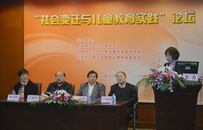 11月22日,“社会变迁与儿童教育实践”论坛在我校举行。论坛由上海师范大学教育学院心理学系、上海师范大学儿童发展与家庭研究中心、上海市心理学会德育心理专业委员会共同举办。来自安徽省宣城市宣州区教体局领导和校长代表,上海市徐汇区、嘉定区、闵行区和金山区等近二十所中小学校的心理教师,我校教育学院心理系部分教师、研究生和本科生等100余人参加了此次会议。