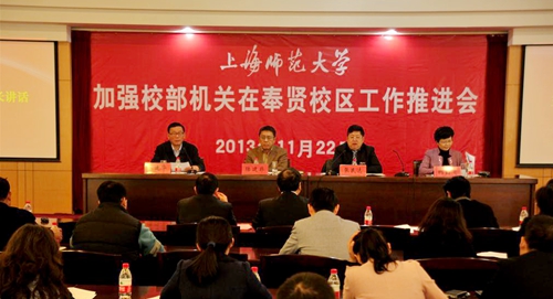 11月22日上午,学校召开加强校部机关在奉贤校区工作推进会,强调校部机关各部处的工作要随着学校布局结构调整和一体化管理模式的推进,向奉贤校区全面有效地延伸。校领导陆建非、张民选、高建华、柯勤飞出席会议并讲话。校部机关各部处正职,信息化办公室、图书馆、后勤实业中心、校医院等直属单位负责人,常驻奉贤校区负责人、全职和兼顾奉贤校区的工作人员参加会议。副校长兼奉贤校区党工委书记、管委会主任高建华主持。